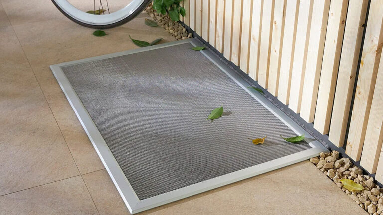 Le coulissage latéral et de plain-pied est simple d’utilisation et peut être bloqué dans la position voulue. Repliée en accordéon elle prend peu de place et devient presque invisible.